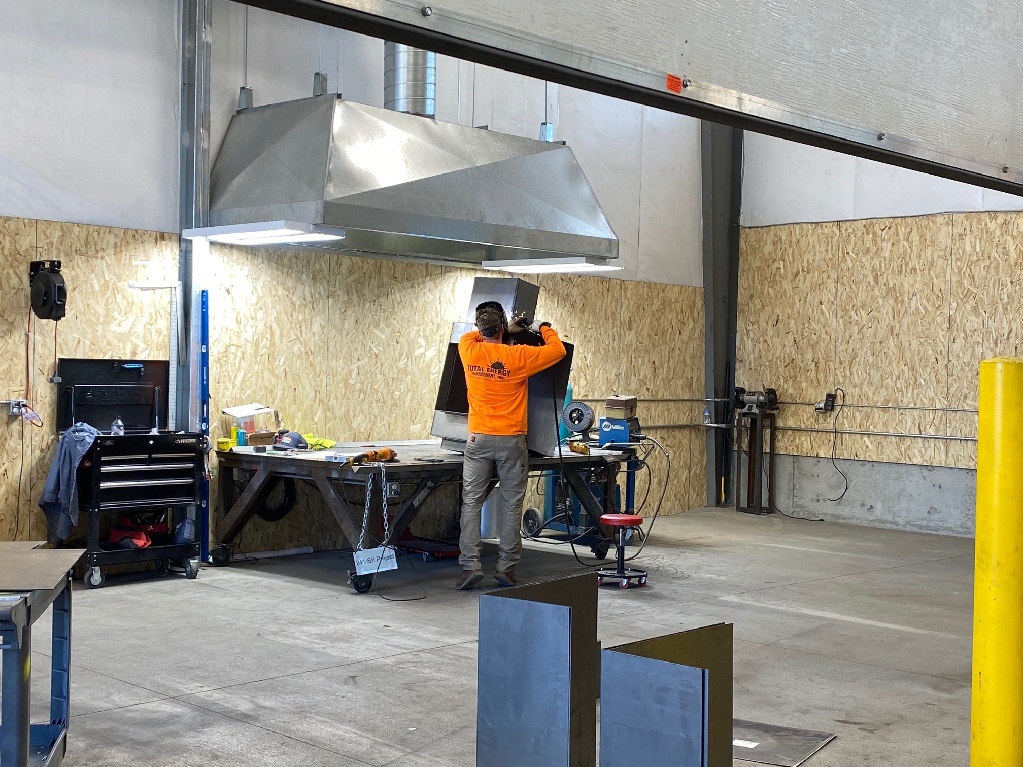 Total Energy Management maintains a complete fabrication facility. TEM’s fabrication facility includes computer aided plasma cutting, shearing, and breaking capacities to ¼” stainless steel, welding stations, and a complete sheet metal assembly line. Our average sheet metal fabrication capacity is between 20,000 & 25,000 pounds per month